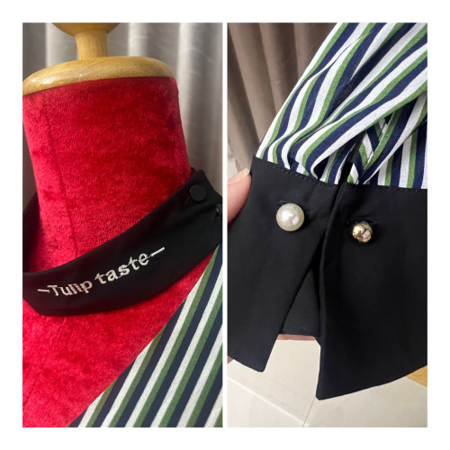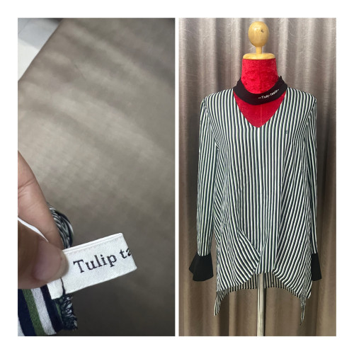 23.TULIP TASTE SIZE M เสื้อผ้าพลิ้ว ดีไซน์เก๋มาก ๆ ค่ะ แต่งสาย logo คอ แขนเป็น cup link ผ้าทอลาย logo ตัวนี้สวยมาก ๆค่ะ คัตติ้งเนี้ยบ ๆ แบบเก๋ ๆ ทรงปล่อยหรู ๆ อก 34++ ขาย 180 บาท