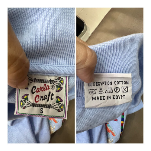 24.CARLA CRAFT SIZE S MADE IN EGYPT คัตติ้ง M อก 34++ เสื้อคอโปโล ผ้านิ่มมากกกก สีฟ้าละมุน ปักลายเก๋ style อียิปต์เลยค่ะ สภาพใหม่กิ๊กๆๆๆ ขาย 180 บาท