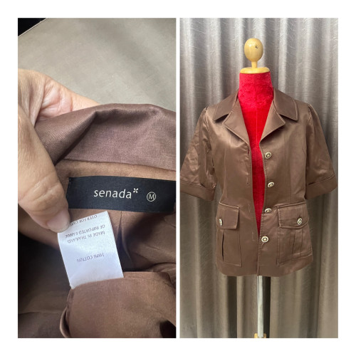 27.SENADA SIZE M เสื้อคลุมหรือใส่เดี่ยวได้ค่ะ สีน้ำตาลสวยหรู กระดุมคริสตัลเก่ ๆ คัตติ้งเนี้ยบ ๆ สภาพใหม่กิ๊กๆๆๆ อก 34+ แบบใส่ได้เรื่อย ๆ ค่ะ ขาย 220 บาท (ไม่ร่วมโปร)