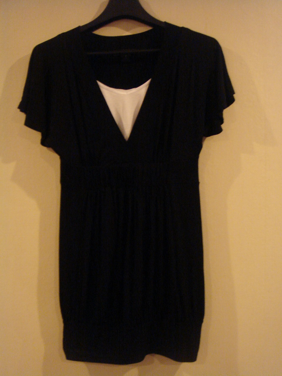 10.Forever 21 เป็นเสื้อยืดสีดำคอวี ใต้หน้าอกเป็น Erastic ค่ะ แม่ค้าเอาเสื้อในสีขาวใส่ไปเพื่อให้เห็นคอความลึกน่ะค่ะ