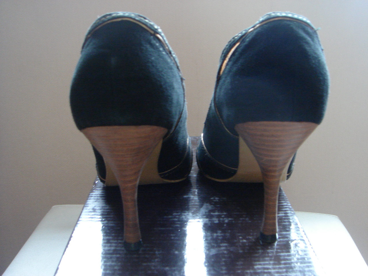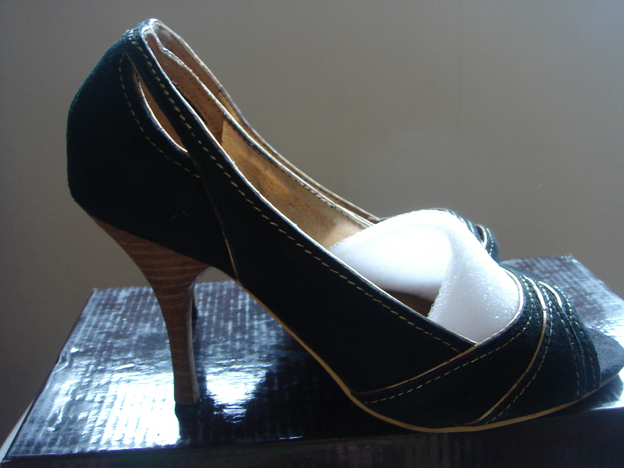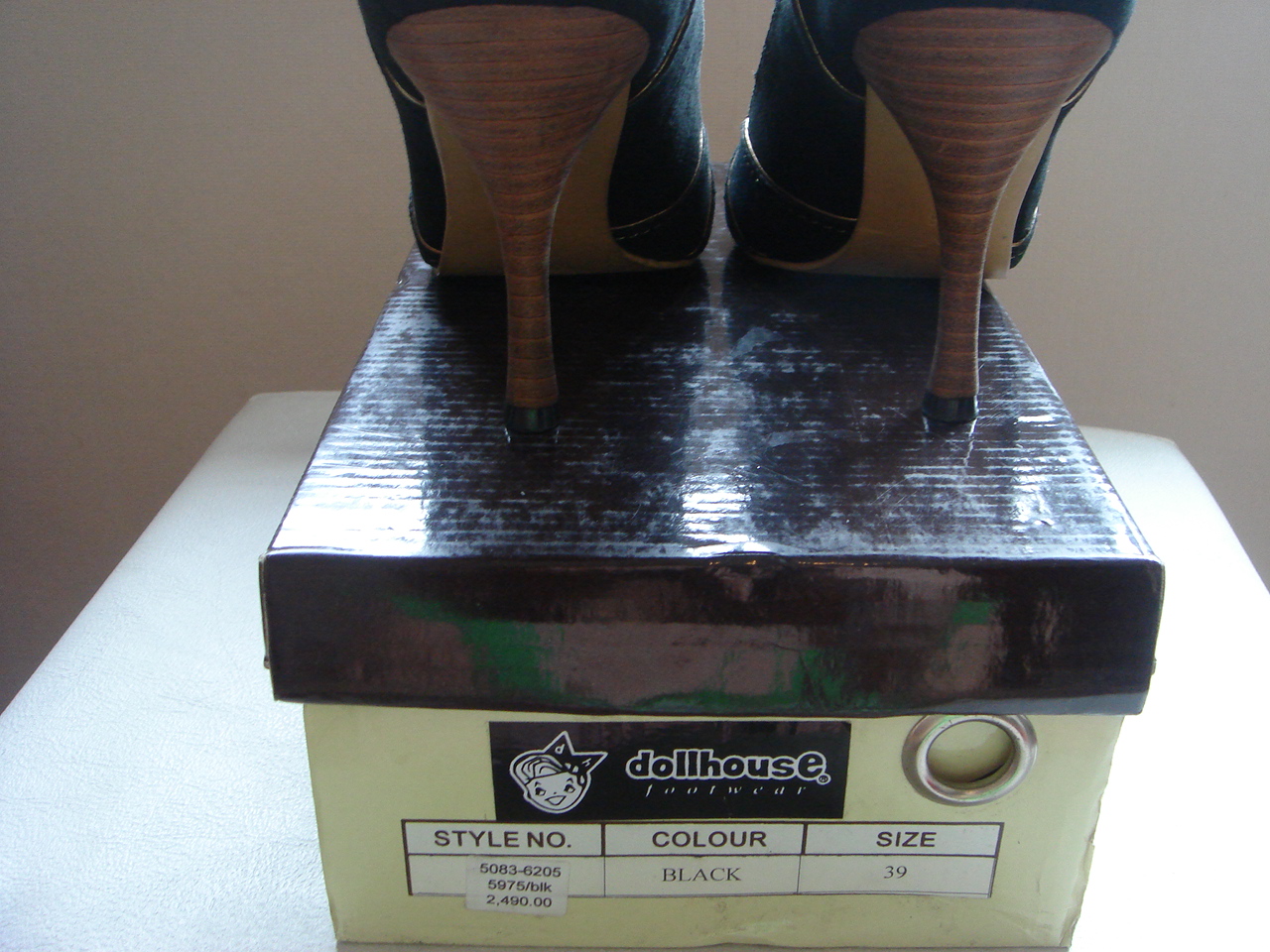 12. รองเท้า Dollhouse ดำคลิบทอง Size 39 น่าจะฟิตคนที่ใส่ Size 38 มากกว่าค่ะ ยาว 9.5" สูง 3" มีถุงใส่และกล่องให้ครบค่ะ