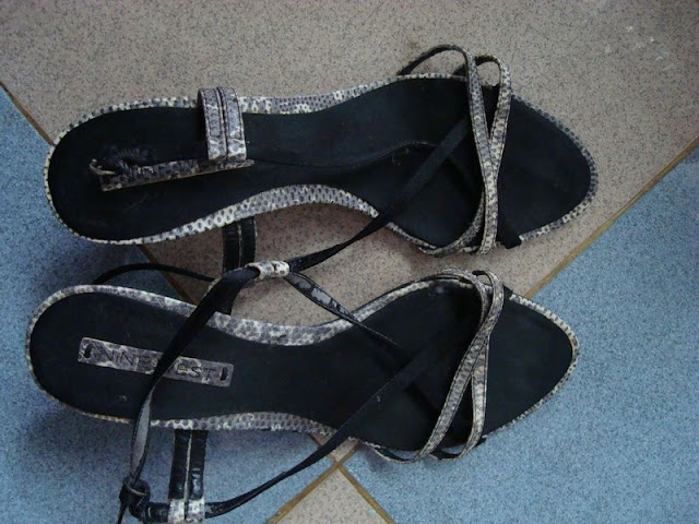 รองเท้า Nine West ลายหนังงู ตรงส้น ยางไปหมดแล้วคะ แต่ เอาไปซ่อมได้ หุๆๆ เบอร์ 39 คะ ขายไปถูกๆ 100 บาท