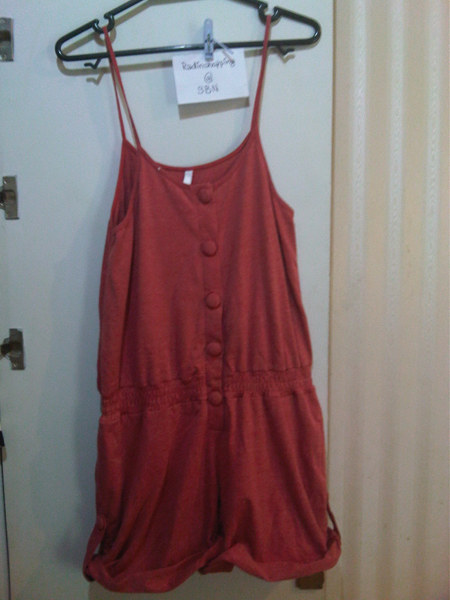 ชุดหมี landmee ผ้าสีแดงออกซีดๆไม่เข้มมากค่ะ เป็นสีของผ้า ขาเป็นกางเกงน่ะค่ะ SALE1150 บาทค่ะใส่ไปครั้งเดียวค่ะ