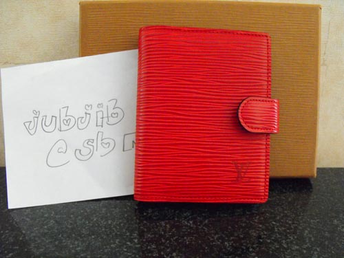 6.LV Red Epi mini agendaขนาด 8*10.5 ซม. สามารถเปลี่ยนไส้เป็นที่ใส่บัตรได้นะค่ะ สภาพดีมากค่ะ ไม่ลอก ไม่เหนียว สีแดงลายยังชัด