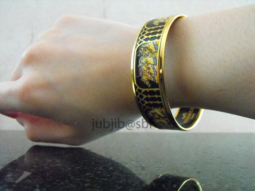 4.Hermes Enemal bracelet ลายม้า ขอบทอง สภาพแจ่ม รอบวง 19 ซม. ความกว้าง 1.7 ซม. จะใส่เดี่ยวหรือใส่คู่กับ clic clac ก็น่ารักทั้งนั้น มาพร้อมกล่องค่า ขาย 11,900ลดลดลด 9,000