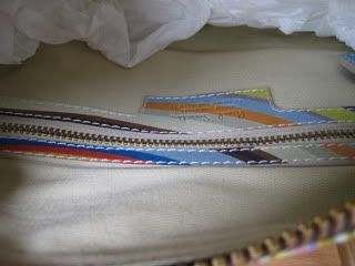 Internally the bag is lined with purple canvas and has two small pockets, one of which is zip fastening.