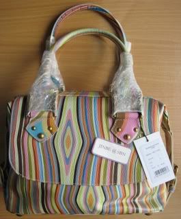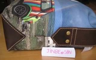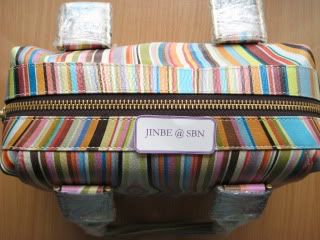 Externally the bag is finished with a zip pocket on the front and also a leather multi stripe, Mini shaped luggage tag.