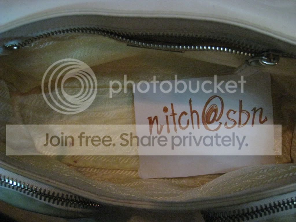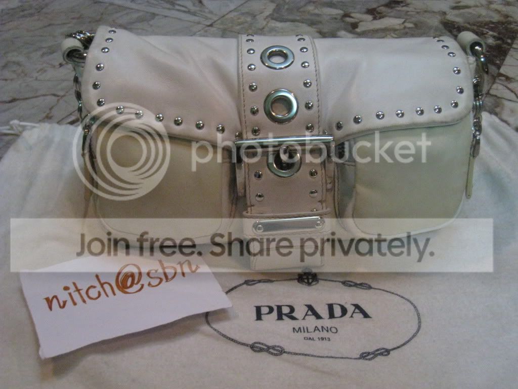 Prada ผ้าร่ม+หนัง สีขาว มีรอยจากการใช้งานบางจุดค่ะ มีถุงผ้าด้วยนะ ราคา 4900 บาท
