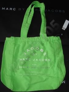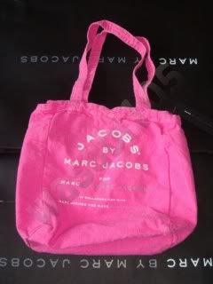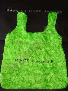 ใส่ได้สองด้าน ด้านหน้าเป็นสีแจ๊ดๆ อีกด้านเขียนว่า "marc jacob...."