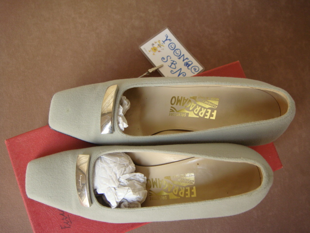FERRAGAMO กระเป๋าผ้าสีเขียวอ่อน ลักษณะของผ้าคล้ายหนังกลับค่ะ บริเวณขอบของหูกระเป๋า สีเริ่มเปลี่ยนค่ะ Buckle สีเงิน มีถุงผ้าให้ค่ะ (ขนาดโดยประมาณ 32 * 30 * 11 ซม.) ขายที่ 2,000 บาทค่ะ