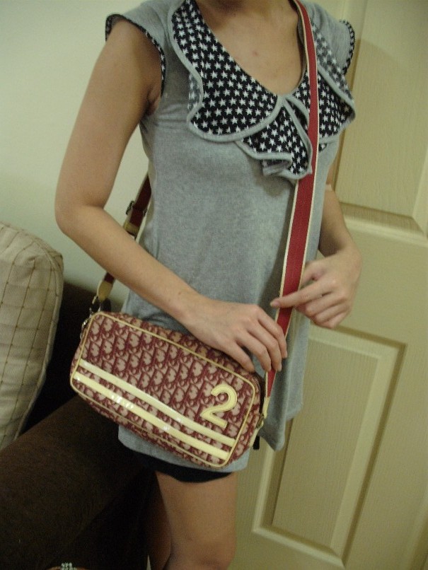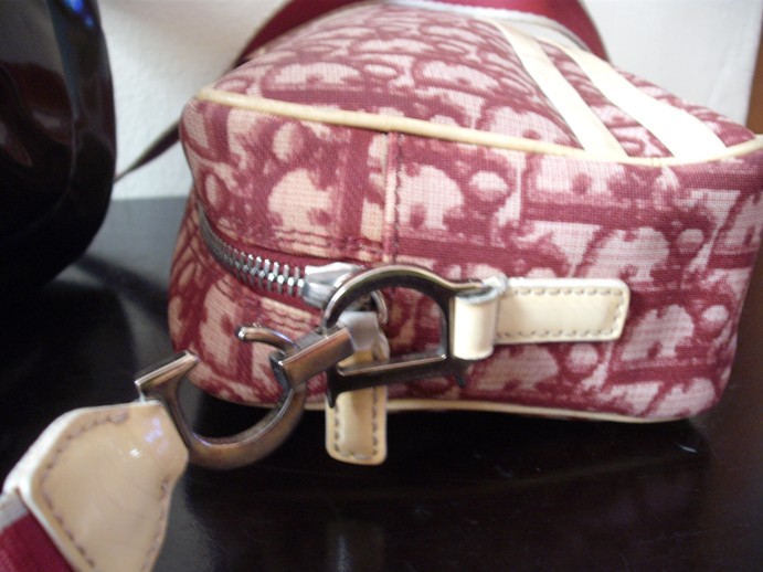 DIOR messenger สีแดง หนังสีขาวสีเข้มขึ้นแล้ว ภายในสะอาด สายปรับได้ 29 x 14 cm. ขาย 1000