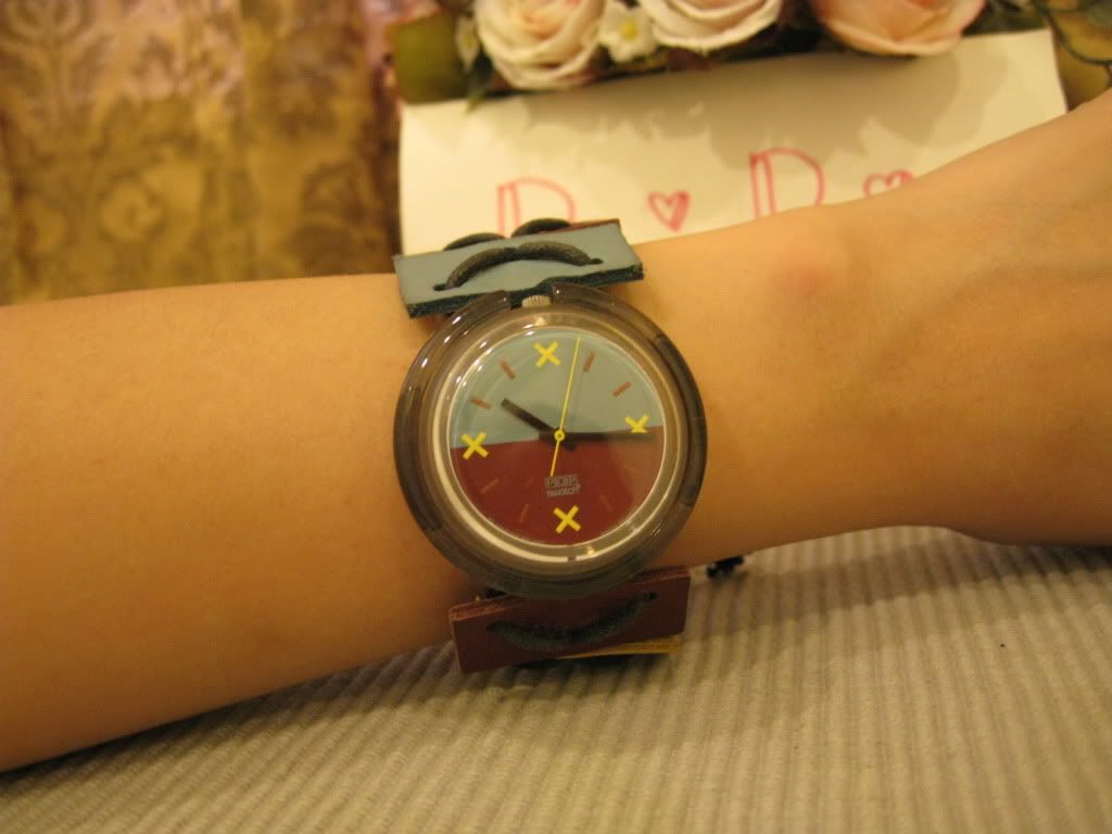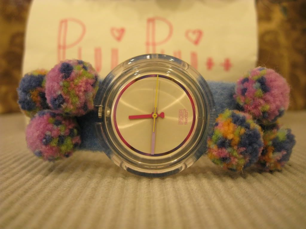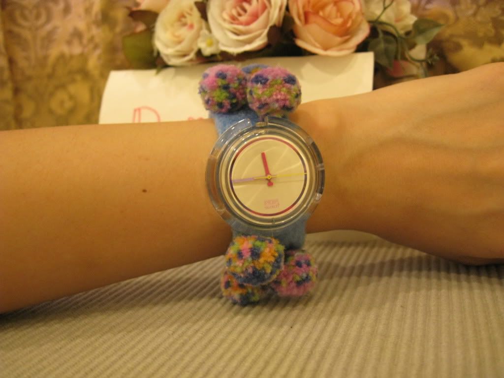นาฬิกา Pop Swatch สายสีฟ้า มีประดับตามสายสวนหวานมากค่ะ