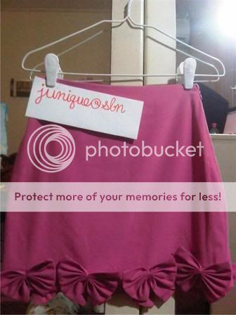 เป็นสีชมพูบานเย็น ประดับโบว์ รอบๆ ตัวกระโปรง ผ้าดีมากๆ ค่ะ