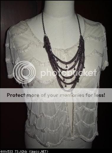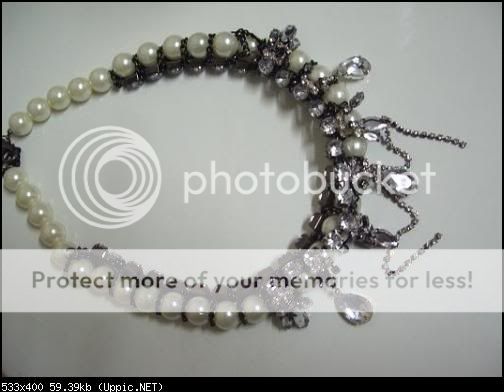 เส้นเเรก เเบบคล้ายๆ กับที่ชมพู่ใส่ค่ะ ประดับตุ้มๆ เพรชรอบๆ ค่ะ สีเงินรมดำ
