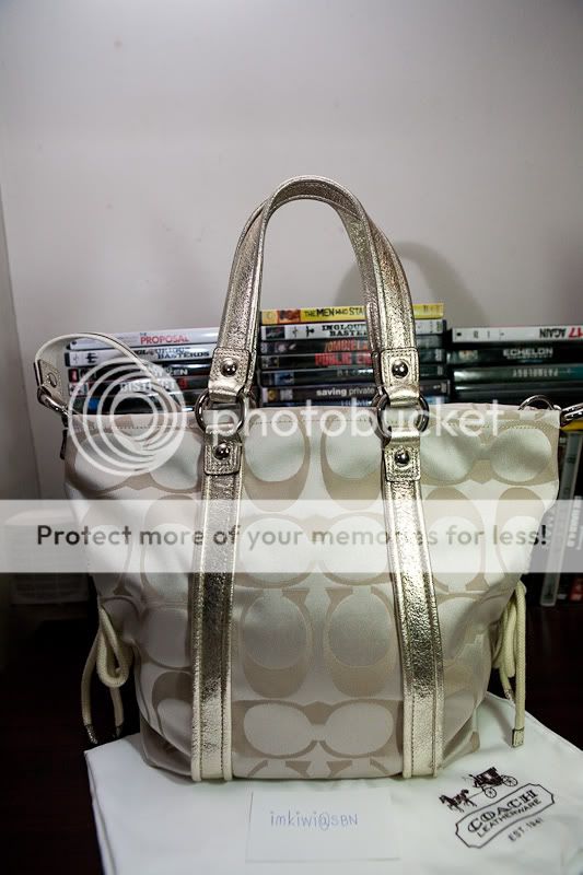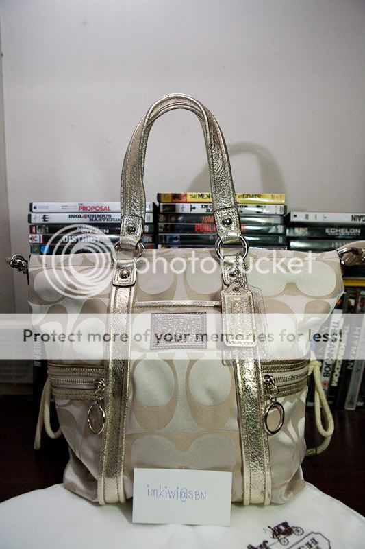 Coach Poppy Signature Spotlight Tote #13843 ราคา 7500 บาท รุ่นนี้จะถือแบบคล้องแขน/สะพายไหล่/สะพายเฉียง ก็ได้ สายสะพายถอดออกได้ ของใหม่ มี ถุงผ้า ให้ครับ