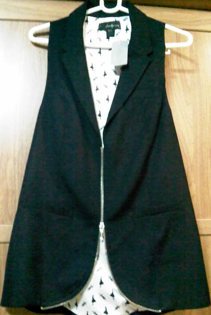 forever21 japan 1200 บาท เป็นเสื้อกั๊กซิปหน้าทั้งตัวค่ะ ด้านในเป็นผ้ามีลายค่ะ น่ารักมาก ตัวค่อนข้างยาว size s ค่ะ