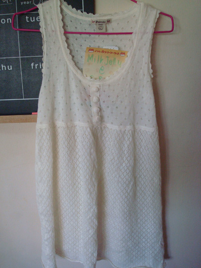 33. FOREVER 21 เสื้อตัวยาวสีขาวครีม หรือเดรสสั้นไหมพรมถักๆ มีลายฉลุๆ น่ารักค่ะ ไซส์ ของใหม่ป้ายห้อยค่ะ