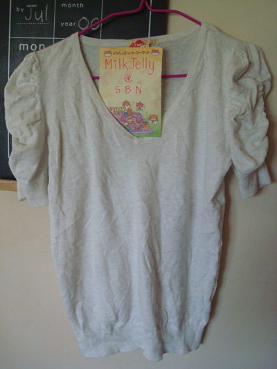 42. FOREVER21 เสื้อผ้ายืดสีเทาอ่อน จับแขนย่นๆพองๆ ไซส์ S ของใหม่ค่ะ