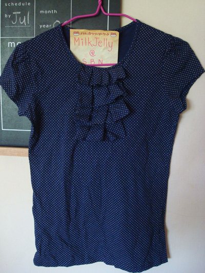 4. KLOSET เสื้อแขนกุด สีน้ำเงิน ตกแต่งผ้าลายจุด ตรงปกน่ารักค่ะ ของใหม่ ป้ายห้อย ไซส์ S ค่ะ