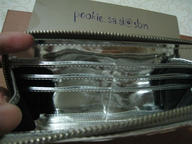 ของใหม่ ป้ายห้อย กระเป๋าสตางค์สีเงินเรียบหรู กับ 6 card , 1 ซิป, 1 ธนบัตร คุ้มค่าจริงจริง มีถุงผ้าให้นะคะราคา 2,400.- บาท SOLD OUT ( ท่านใดสนใจสั่งต่อได้นะคะ )