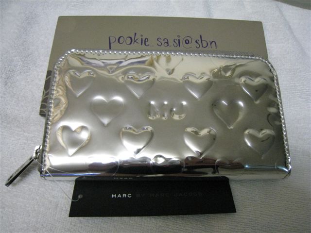 5.NEW MARC BY MARC JACOBS : Mirror Heart Long Wallet สีเงิน Silver 1 ใบ