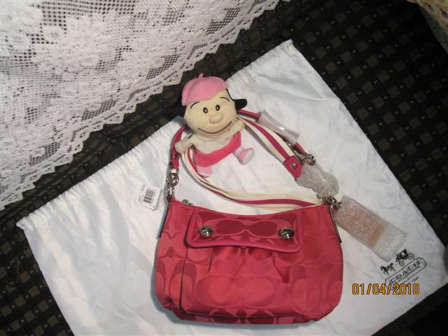 Coach Signature Poppy Groovy Pink มีสายสั้นและสายยาวสะพาย cross-body ได้ค่ะ ขาย 5,800 ค่ะ มีถุงผ้า การ์ด ให้ค่ะ ขนาด 12 3/4 (L) x 6 1/2 (H) x 3 3/4 (W)