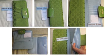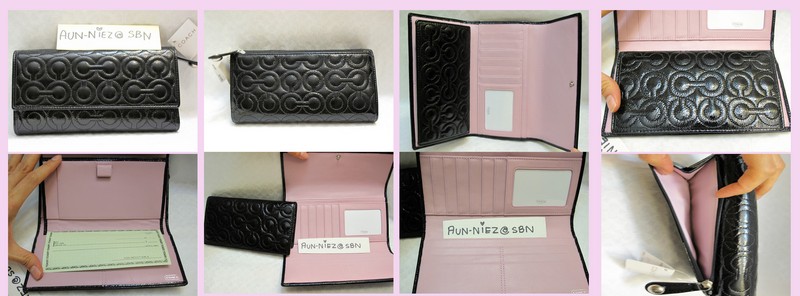 รุ่น 42962 ขนาด 8(L) x 4 .25 (H) หนังแก้ว ตัวซีนูน Op Art สวยมากๆคะ มีช่องการ์ด12 ช่อง ช่องใส่บัตร ช่องใส่แบงค์ 2 ช่อง มีกระเป๋าเช๊คแยกออกได้ ที่เสียบปากกา สวยคลาสิคคะ
