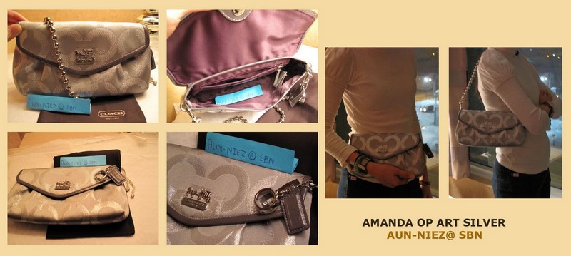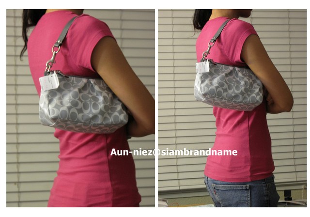 ใบนี้ตัว C รุ่นใหม่ สีเทาประกายเพชรวิ้งมั่กๆ ดูหรูหราเกินราคา สะพายหรือว่าถือก็ได้คะแค่ถอดสายเหล็กออก ข้างในบุผ้าสีม่วง สภาพเนี้ยบค้า