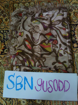 ผ้าพันคอkloset ผ้าชีฟองพลิ้วๆ ใช้ไปสองครั้งไม่มีตำหนิพร้อมถุงผ้าขาย1200
