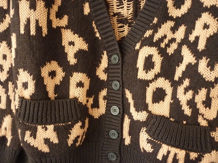 เสื้อคาดิแก้นผ้าไหมพรมสีชมพู ลายโบว์ดำเล็กๆทั้งตัว