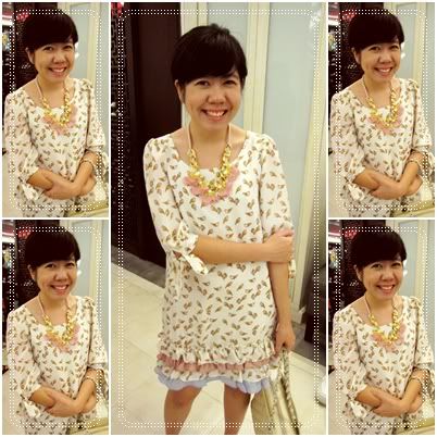 ต่อมาเป็นเสื้อชีฟองเหลืองประดับด้วยมุกและริบบิ้นค่า ใส่คู่กับกางเกงเอวสูงสีฟ้า ด้านหลังผูกโบว์ น่ารักมากมายค่า หวานสุดๆ ><