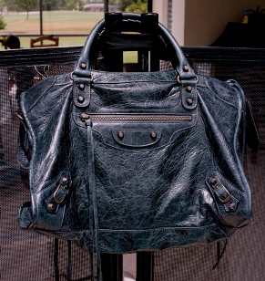 เมื่อกระเป๋าสีกรมท่าอมเทาไปเจอแสงสีเหลืองเลยอาจทำให้มองเห็นเป็นสีอมเขียวนิดๆได้